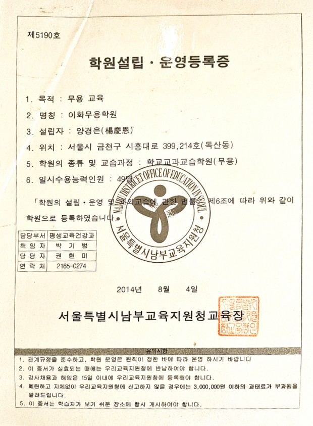 이화무용학원 | 대표 : 양경은 | 전화 : 02-863-2991